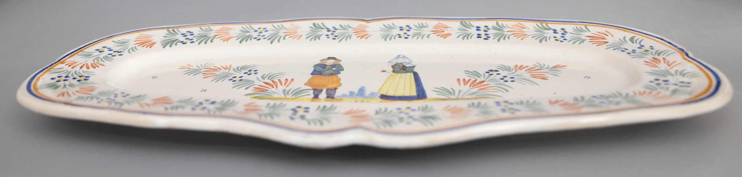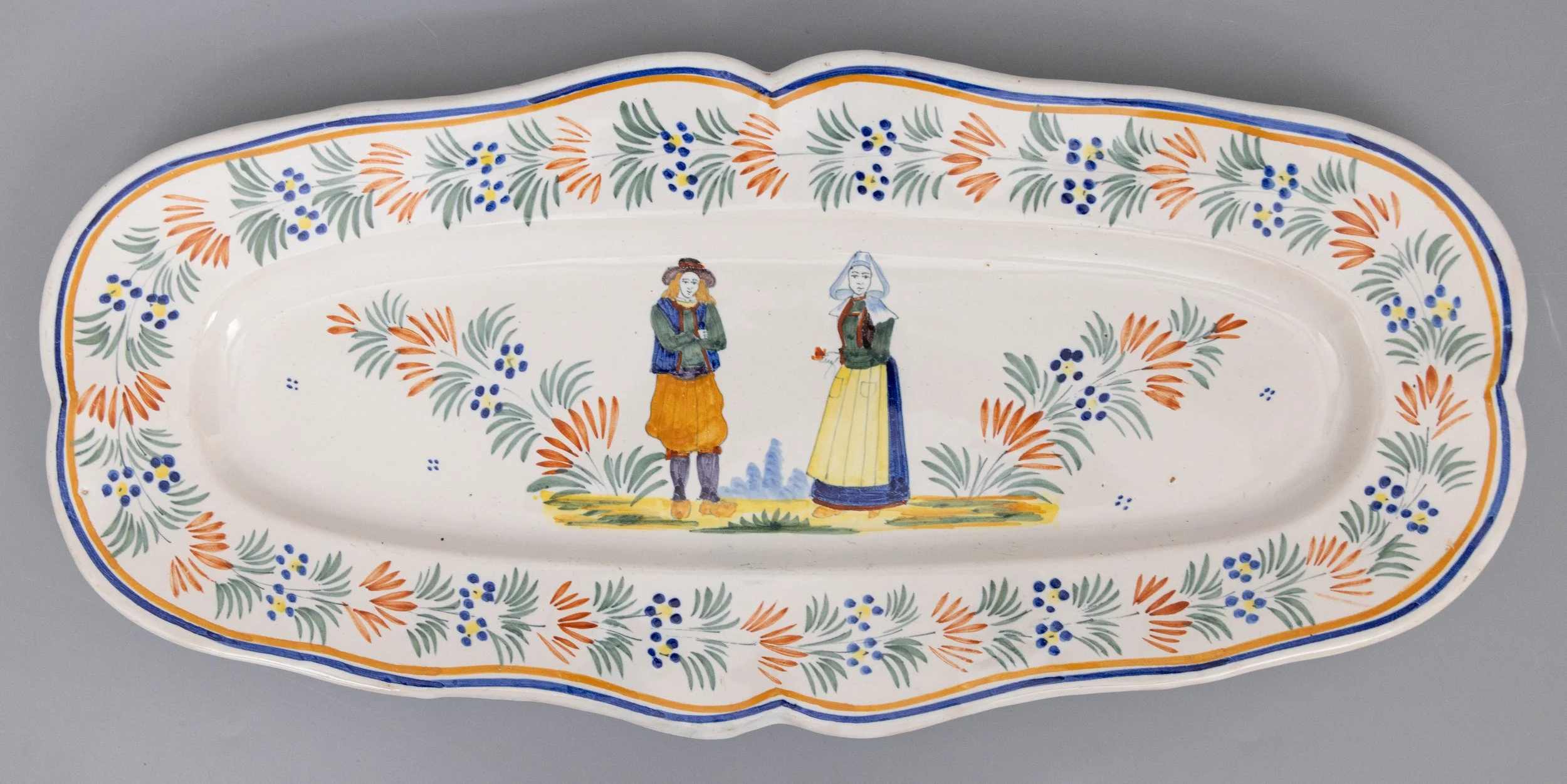 Antique French Faience Henriot Quimper Dancing Couple Scalloped Plate